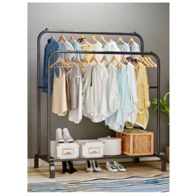 Ready Stock Double Pole Dua Tiang Rak Baju Clothes Rack Hanging Organizer Penyangkut Penyidai Baju Bilik Ala Ikea Mullig Shopee Malaysia