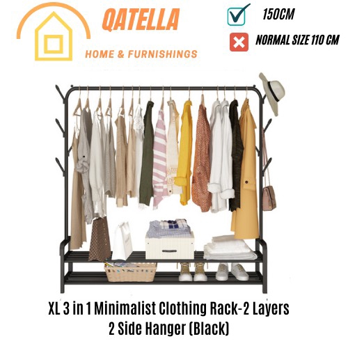 Xl Size 3 In 1 Clothes Rack Hanging Organizer Ikea Mulig Rack Penyangkut Baju Rak Penyidai Baju Ikea Rack Rak Baju Double Row White Pgmall